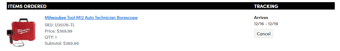 Once the code is entered you will be directed to your order information shown below where you can select cancel.