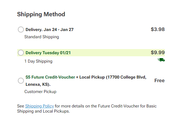 Local pickup is now available for qualifying items from our Kansas location! Look for ‘Free Pickup’ on the product page or the ‘Pickup Locally’ shipping method option during checkout.