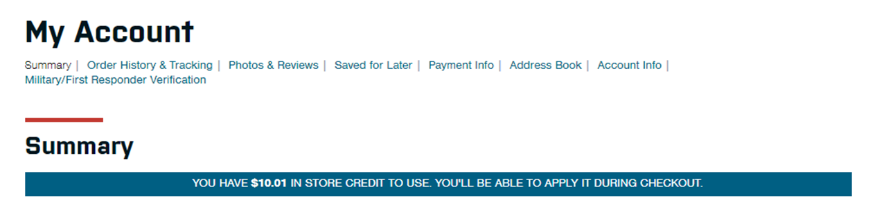 - During checkout, you’ll see your available store credit applied automatically to your order total.