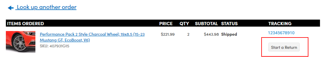 Once you access the portal, all items eligible for return will have the 'Start a Return' button under the tracking information: